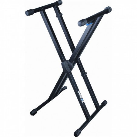 Il T/550 è un supporto a X per tastiera a doppio telaio, particolarmente robusto e, ovviamente, dotato di sistema di apertura/ chiusura TRIGGER LOK. A singolo livello, è espandibile con tutti gli accessori della serie QLX, tra cui la coppia di braccetti aggiuntivi QLX/1 per un secondo livello di supporto.