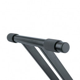 Il nostro miglior cavalletto X - comodo ed estremamente robusto. Il nuovo design dei tubi del supporto a doppio braccio garantisce una stabilità e una sicurezza percepibili. La leva di bloccaggio ergonomica facilita l'installazione e lo smontaggio del supporto per tastiera. Il robusto snodo metallico è intrecciato a passi di 5° e consente una moltitudine di posizioni diverse. La scala offre all'utente la possibilità di selezionare sempre l'impostazione preferita. Entrambe le testate posteriori in gomma sono regolabili sul loro asse e possono quindi essere adattate perfettamente alla larghezza della tastiera. La profondità massima è di 350 mm. Le caratteristiche di qualità tipiche di K&M, come la solida lavorazione, la verniciatura a polvere di alta qualità e un utile tappo terminale regolabile per le superfici irregolari, completano il concetto e il design complessivo. Il supporto può essere ampliato per una seconda tastiera con l'impilatore 18941.