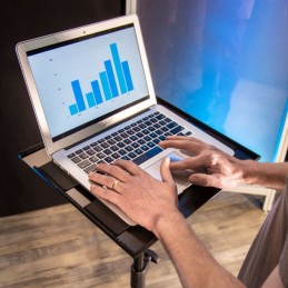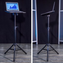 Supporto multi funzionale semplice e comodo. Utilizzabile per mixer di piccole dimensioni e comodo come veloce appoggio per expanders, processori, piccole percussioni, accessori, fascicoli di partiture musicali di fianco al leggio.