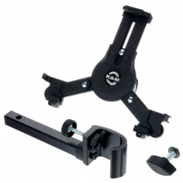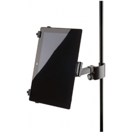 Supporto universale per tablet per diversi modelli. Il supporto universale per tablet può essere regolato in modo variabile per ospitare tablet di diverse dimensioni senza bisogno di attrezzi e tiene i dispositivi in modo sicuro ed efficace per molte situazioni diverse. Che sia sul palco, in sala prove o a casa - grazie al robusto elemento di bloccaggio con la vite di bloccaggio ergonomica il supporto può essere fissato a qualsiasi tubo fino a 30 mm in modo rapido e semplice. I bracci di supporto regolabili individualmente possono ospitare l'uso di tablet che vanno in altezza da 222 a 334 mm e in larghezza da 128 a 232 mm (per esempio iPad, iPad Air, iPad Pro, Amazon Fire HDX 8.9, Samsung Galaxy Tab da 9.7, Google Nexus 9, Asus Transformer o Microsoft Surface così come Surface Pro). La profondità dei tablet può variare tra 6 e 11 mm. Per il primo utilizzo del supporto per tablet, le impostazioni dei bracci di supporto sono fatte regolando le viti del morsetto alle dimensioni e alla profondità del tablet. Per gli altri usi, la tavoletta può essere attaccata e staccata rapidamente e semplicemente attraverso una chiusura a scatto.Un pratico dado ad alette permette di regolare l'angolo, in modo che ogni utente possa facilmente trovare la sua posizione individuale ideale. Il tablet può passare dalla posizione verticale a quella orizzontale e viceversa. Il tablet è tenuto in posizione, non c'è pericolo che il tablet cambi posizione da solo.
