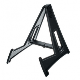 Maneggevolezza e peso minimo combinati con un'eccellente stabilità sono le caratteristiche speciali di questo supporto per ukulele A-Frame. Grazie al pratico meccanismo pieghevole, il supporto si installa e si piega in un attimo. La confezione piatta è ideale per il trasporto. Lo strumento che protegge le superfici di appoggio in gomma completa l'impressione generale attraente. - Depth of instrument support: 85 mm. Peso: 0,2 kg, H: 220 mm.