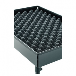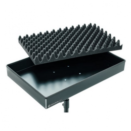 Utile tavolo da percussione per principianti, suonatori avanzati e professionisti. Il supporto robusto e stabile può essere continuamente regolato in altezza da 820 a 1350 mm. La piastra di supporto con le sue generose dimensioni di 576 x 376 mm può essere rimossa per un trasporto salvaspazio. Un inserto in schiuma spessa con struttura a nubia, così come la protezione dei bordi a tutto tondo, assicurano un utilizzo che assorbe il rumore. I tappi terminali in gomma antiscivolo, i dadi ad alette facili da usare e la resistente verniciatura a polvere garantiscono un uso duraturo.