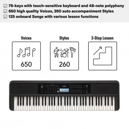 Suona liberamente tutti i tuoi brani preferiti con 76 tasti. Le nuove tastiere entry level EW320 sono caratterizzate da una risposta al tocco completa che offre un controllo dinamico del suono, anche nelle sfumature espressive più delicate, e da un’ampia gamma di 650 Voci, tra cui quella del grand piano. Dispongono inoltre di un vasto numero di brani incorporati e di utili funzioni didattiche che rendono la pratica e l’esibizione il più naturale possibile.