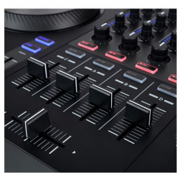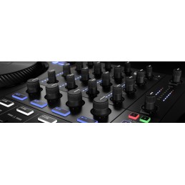 Se hai fatto il DJ su due canali finora, raddoppiare i deck significa molta più libertà nel tuo mix - come usare layer ritmici, campioni oppure mantenere una traccia esplosiva parcheggiata sul Deck C. Il cuore del Traktor Kontrol S3 è il mixer a quattro canali, con fader full-length, EQ, cueing e controllo Mixer FX su ciascun deck. Stupisci con hotcues, campioni e loop con otto pad RGB su ciascun deck. Quando è il momento di fare di più, cambia i deck e mantieniti in pista con gli anelli luminosi della jog wheel. Quando è il momento di mettere su il tuo mix, puoi sfruttare le jog wheel a disposizione. Sensibili al tocco e super regolari si sentono benissimo anche con gli scratch. Gli anelli luminosi RGB ti consentono di sapere a colpo d'occhio quale deck sta suonando e ti avvisano quando sei quasi fuori traccia. Suona campioni, loop di batteria, taglia pezzi vocali o utilizza anche le tue produzioni nel mix, se è il tuo genere. Ripeti in un loop qualsiasi parte di una traccia e assegnala ad un pad, oppure salta in qualsiasi parte della traccia utilizzando Hotcues. Il beatsync di Traktor Pro implica che non perderai mai il tempo. Apri un riverbero o un delay "dotted": I Mixer FX sono effetti one-touch su ciascun canale, ottimi per creare energia, modellare il suono o semplicemente per scatenarti. Scegli tra otto effetti e tre filtri ed assegnali agli slot dedicati sul mixer per un accesso rapido.