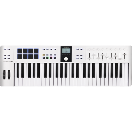 Che tu sia un produttore principiante, un musicista esperto o chiunque altro, libera tutto il tuo potenziale creativo con un controller MIDI che abbatte tutte le barriere tra te, la tua DAW e il tuo suono perfetto. KeyLab Essential mk3 segue le orme di MiniLab 3, il primo controller MIDI eco-progettato al mondo; costruito per funzionare meglio, produrre meno rifiuti e ridurre definitivamente la nostra impronta di carbonio. Realizzato con almeno il 40% di plastica riciclata, imballaggi riciclabili al 100% e una riduzione dell'impronta di carbonio del materiale del 18%, questo controller prende sul serio la sostenibilità. KeyLab Essential mk3 porta l'integrazione DAW a un altro livello. Modifica le impostazioni audio, crea mappature personalizzate, avvia clip e scene e naviga in qualsiasi progetto in tempo reale, il tutto senza mai lasciare i controlli di KeyLab Essential. Hai il pieno controllo grazie agli script DAW personalizzati per Ableton Live, Logic Pro, FL Studio, Cubase e Bitwig Studio, con il supporto per altri DAW principali pianificati in futuro. Meglio ancora, il protocollo MCU/HUI significa che può supportare qualsiasi altra workstation in modo familiare, per quel flusso di lavoro soddisfacente e integrato che hai sempre desiderato. Ottieni le informazioni essenziali in tempo reale di cui hai bisogno, dai valori dei parametri al preset corrente, con un luminoso display da 2,5", completo di pulsanti contestuali che semplificano la navigazione.