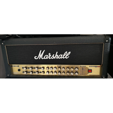 La Marshall AVT150H è una testata a transistor da 150 watt, 4 canali, preamp valvolare con valvola ECC 83, 16 effetti digitali, acoustic simulator, presa cuffia, uscita Di Speaker emulated.
