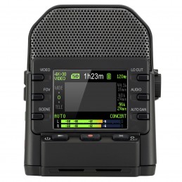 5 impostazioni di scena (Auto / Indoor / Outdoor / Night / Concert Light) e 3 impostazioni di luminosità; monitor LCD a colori da 2", ruotabile di 180°; 5 effetti per migliorare la qualità della registrazione (Limiter / Compressor / Leveler / DeEsser / NoiseGate) e filtro low-cut commutabile;